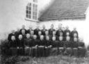 1933. Stående : Sigurd Johansson, Arne Johansson , Olle Svärd, Prästen Hugo Nordner, Herbert Lövgren, Karl-Erik Karlsson och Gösta Johansson. Sittande. Alice Sandberg, Stina Breman, Karin Svensson, Anna-Lisa Karlsson Anna-Stina Segerstedt, Rut Läth och Maj Gustavsson. |