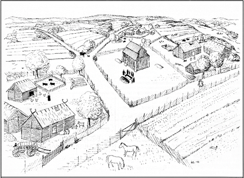 Karleby på vikingatiden? Teckning av Ulla Sköld i Populär arkeologi nr 1 1989