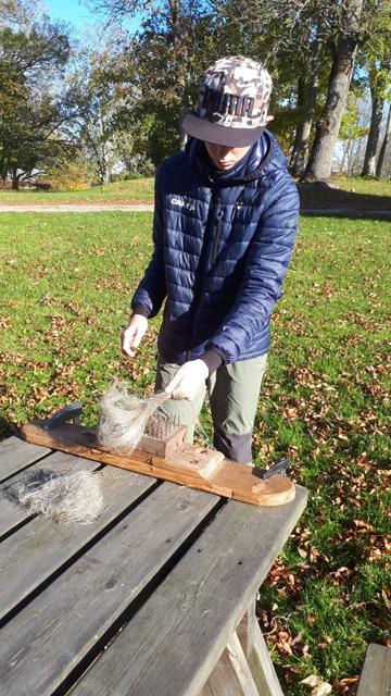 Joakim Lilja hade ordnat med det finaste milda höstväder till deltagarna i linberedardagen. Där bråkades, skäktades och härvades på livet löst- Från rötade linbuntar till det finaste silvergråa linfiber. Joakim är en traditionsbärare som sprider kunskap om gamla arbetsmetoder och hantverk och hembygdsföreningen är glad för att vi kan få vara ramen om detta arbete. Flera av deltagarna kom långväga från för att kunna deltaga. Innan hade de odlat de linfrö som de fått tillsänt.